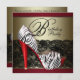 Elégante invitation à la fête d'anniversaire de chaussure à talon élevé rouge et noir. Cette belle invitation zèbre rouge à talon élevé est facilement customisée pour votre événement en choisissant simplement le bouton "Customiser!" pour commencer à ajouter vos détails d'événement, le style de police, la taille et la couleur de police et le libellé. Veuillez noter que tous les modèles de cartes et d'invitations que vous trouverez sur Zazzle sont des graphiques imprimés sans bijoux, arcs, surélevés, gaufrés, ou pièces ou pièces ajoutées. com.