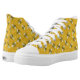 Ces chaussures uniques de haut-dessus sont les genoux de l'abeille. Elles sont couvertes dans un motif d'or-jaune de nid d'abeilles d'abeilles rampant au-dessus de lui. Les abeilles jaunes et noires ont les ailes blanc-bleues de gaze et regardent comme elles rampent à l'intérieur de leur ruche.