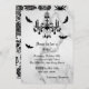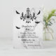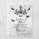 Un lustre en cristal noir et des chauves-souris étranges sur un arrière - plan classique en marbre décorent l'Invitation de la fête d'Halloween moderne. Le dos est orné d'un motif fantaisiste damassé.