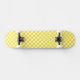 This quality made skateboard is shown in a yellow and white checkered print.
