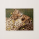 Puzzle de jeu montré avec une empreinte photo de beaux guépards. Customisez cet objet ou achetez tel quel. Image stock