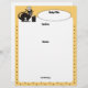 Drôle, mignon chat noir portant le casquette d'un chef et reniflant les arômes vapeur d'une casserole de cuisine sur papier à en-tête de recette pour vos recettes de cuisine, plat principal ou de livre à soupe ou pour partager vos recettes de conservation.