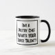 Drôle slogan sur une tasse à café à deux tons qui dit "Je suis un chef pâtissier. Quel est VOTRE super talent ?" Deux tonneaux de café pour un chef pâtissier. Texte en gras noir et blanc.