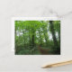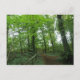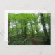 Cette superbe carte postale présente une photo prise dans une forêt en Angleterre. Les beaux arbres brillent d'un vert intense à mesure qu'ils atteignent le ciel. Un petit sentier serpente au fond des bois entourés de grands arbres.