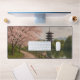 Immergez-vous dans l'élégance du printemps au Japon avec ce tapis de bureau avec un chemin bordé de fleurs de cerisiers à côté d'un plan réfléchissant d'eau. Une majestueuse pagode à plusieurs étages s'élève dans l'arrière - plan, encadrée de collines verdoyantes et d'arbres. Le ciel couvert ajoute une atmosphère douce et tranquille, faisant de ce tapis un mélange parfait de beauté naturelle et d'héritage culturel. Idéal pour créer un espace de travail apaisant qui inspire la pleine conscience, la créativité et l'appréciation de paysages intemporels.