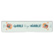 Complétez votre ensemble de repas Thanksgiving avec ce coureur de table personnalisé avec un design de dinde charme et la phrase ludique : "Gobble til Wobble!" Ce coureur personnalisable vous permet d'ajouter votre nom de famille, ce qui en fait un ajout unique à votre table de vacances ou un cadeau réfléchi pour vos amis et votre famille. Le design dynamique de la dinde ajoute une touche festive, parfaite pour la fête de Thanksgiving.
