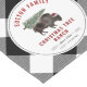 Illustration d'un bison de buffle portant un chapeau santa avec un arbre de Noël attaché au dos. Bison noir et blanc plaqué conception de bordure avec texte noir et rouge.
