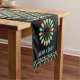 Éclairer votre table de vacances avec ce coureur avec un texte facile à customiser et orné d'un motif graphique d'ampoules décoratives de Noël en bleu et orange.