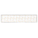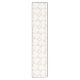 Ce coureur de table présente un motif extensible de quatre coeurs blancs entourant un diamant central avec une bordure bronzée sur un arrière - plan beige foncé.