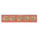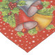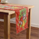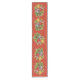 Coureur de table de Noël avec de grandes cloches vibrantes en rouge, bleu, or sur houx et baies avec un arrière - plan rouge.