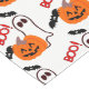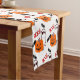 Le coureur de table pour mettre en valeur votre décor de table est montré dans une couleur solide de blanc avec une impression festive d'Halloween.