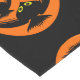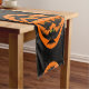 Cet impressionnant coureur de table présente un ovale orange avec six corneilles dedans. Chaque corbeau a des yeux jaunes avec des élèves noirs et des ailes étirées. Les corbeaux volent vers l'autre formant une forme ovale. L'arrière - plan est noir.
