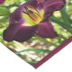 Un coureur de table avec une photo d'un lis pourpre sur un arrière - plan violet