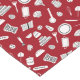 Cuisine rouge rétro avec plats et accessoires noirs et blancs dessinés à la main.
