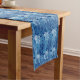 Chemin De Table Court Damassé de fleur, marine, bleu de ciel et blanc