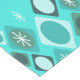 Un âge atomique du milieu du siècle moderne des années 1950 art abstrait avec des starbursts en ovales dans des diamants arrondis. Vert bleu, turquoise, turquoise, bleu clair, vert menthe.