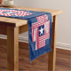 Le coureur patriotique de table a le motif de style d'édredon du drapeau américain. Chaque section se composent de quatre drapeaux disposés dans un carré avec une étoile blanche au centre et tous sur un arrière - plan bleu. Fait une grande décoration pour 4 juillet des dîners de BBQs, de Jour du Souvenir et des célébrations de jour de vétérans.