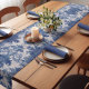 Chemin De Table Court Élégant damassé Bleu toile de jouy monogramme