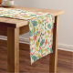 Ajoutez une touche de fiesta mexicaine à n'importe quelle fête avec ce coureur de table à motifs. Il présente mes illustrations de sombreros, bunting, poivrons, citron vert, guitares, chips tortilla, cactus et plus en rouge, orange, jaune, vert et bleu contre un arrière - plan couleur crème.