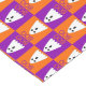 Ce somptueux coureur de table présente un mignon petit fantôme blanc aux yeux noirs et une bouche noire qui est large ouverte. Chaque fantôme est posé sur un carré orange ou un carré violet et chaque carré contient du texte orange ou violet qui dit Boo ! Le résultat est un motif de carrés et de fantômes.