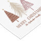 Un design élégant de chemin de table festif présente un affichage classe de trois arbres de Noël en rouge, or et rose à chaque extrémité. Directement sous les arbres, "Joyeux Noël" est présenté dans une typographie classique élégante. Ajoutez un nom ou une ligne de texte personnalisé en écriture rouge assortie grâce au modèle facile à utiliser. Le design sophistiqué se répète à l'autre extrémité. Le fond est complété par un blanc croquant.