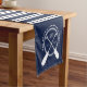Nautique coureur de table en bleu marine et blanc pour votre maison de lac. Ajoutez votre nom de famille, votre initiale et l'année établie à un monogramme nautique de pagaies croisées au-dessus d'un cercle de corde. Le coureur de table monogrammed présente également des rayures bleu marine et blanc.