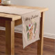 Pain D'Épices Avec Cerise Sur Le Dessus Candycane Courte Table Runner. Un mignon homme en pain d'épices avec les plus grands yeux et le sourire, debout près de ses sucres de canne portant une cerise sur le chapeau. Modifiez facilement votre salutation, votre nom de famille ou changez de couleur arrière - plan pour correspondre à votre décor de vacances.