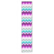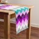 Un coureur de table de 14" x 72" avec un beau design motif coloré de chevrons en plum violet ombre, lilas, blanc, minty turquoise, turquoise et gris.