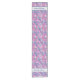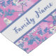 Customisez cet élégant coureur de table avec un motif de fleurs blanches et de boucles bleues sur un arrière - plan ping saisissant avec votre nom de famille.