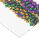 SlipperyJoe's iconic Mardi Gras–themed image elegant flowing script yellow outline shiny metallic bead necklaces gifts new orleans traditional purple gold green artistic symmetrical decorative pattern glossy reflective celebratory parade ready emphasizing abundance sparkles festival colors Carnival Fat Tuesday festival lively vibrant spirited party extravagant cultural masked energy