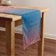 This table runner feels like a slow instrumental drifting through the evening air. Cool blue tones flow into soft violet and warm rose, creating a gradient that looks like the sound of a quiet melody moving across a twilight sky. The colors stretch across the table like a musical passage that gently rises and falls, setting a calm and atmospheric mood.