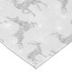 Holiday table runner is shown with a festive silver faux glitter deer print.