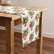 Runner de table avec une illustration de style vintage. 3 boules de Noël rouges entourées de saints verts et de baies. Design rétro élégant.