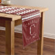 Thinner stripes and a cranberry (red) color add a slight twist on the classic striped table runner. Customize with your family name, monogram, and year established