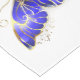 Bijoux, bleu, saphir, papillon aux fleurs pétillantes avec aile décorée de bleu, fleurs précieuses avec feuilles d'or sur arrière - plan blanc.