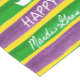 Le mardi gras le long de la Côte du Golfe est une grande célébration. Ce coureur de table reflète les couleurs de célébration--Vert clair, pourpre, et or. Les rayures ont été créées à la main ont peint des aquarelles appliquées à un arrière - plan d'or.