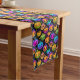 Le coureur de table Halloween est affiché avec une impression citrouille colorée. Couleur Noir Personnaliser cet article ou acheter tel quel.