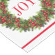 Ce coureur de table de vacances est montré en Blanc avec une impression festive de couronne de Noël avec un texte disant Joy. Choisissez parmi trois tailles. Customisez cet objet ou achetez tel quel.