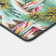 Ce design coloré est basé sur une impression de chemise Aloha rétro qui était populaire dans les années 60 et les années 70. Il comprend des îles hawaïennes, des palmiers et des planches de surfs.