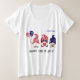 Joyeux 4 juillet adorable, nom de script moderne, mignons gnomes rouges, blancs et bleus, t-shirt blanc grande taille du 1X (14-16) au 4X (26-28). Modifiez ou supprimez le nom et le texte en utilisant le modèle simple fourni. Agrandissez pour voir que l'impression solide a un aspect grunge granuleux. Conçu pour compléter la silhouette d'une femme. Taille normale ; forme flatteuse pour toutes les tailles. La longueur du t-shirt aide à éviter les tiraillements constants. Étiquettes EasyTear™ pour un confort sans étiquette. Excellentes évaluations. Voir "À propos de ce produit" sur le côté pour plus d'informations sur le tissu et l'entretien.