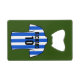 Créez un Bottle Opener avec votre chemise de football de votre choix avec un nom et un numéro ajoutés. Chemise de football Blue and White Stripes.