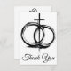 Plus qu'une cérémonie. Plus qu'une promesse. Ce design capture le lien sacré de l'amour et de la foi — deux alliances entrelacées ancrées par une croix, symbolisant l'unité, l'éternité et la connexion divine. Partagez votre sincère Merci avec chacun de vos invités.