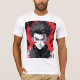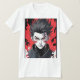 Chemise de guerrier Dark anime avec aura d'énergie cramoisie et audacieuse flamme art. Un t-shirt unique d'inspiration japonaise pour les fans d'animation et les amateurs de vêtements de rue urbains.