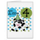 Vache design de 4ème anniversaire avec ballons et pois bleus et verts, idéal pour tout enfant qui aime les vaches et les animaux de ferme et célèbre son 4ème anniversaire!