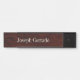 Bois foncé noir cerisier Couleur Look Hanging Mur Nameplate Porte de bureau Nom plaque avec lettrage couleur ivoire montré avec cadre noir.