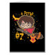 Découvrez cette mignonne version dessin animé de Harry Potter dans son uniforme de Chercheur de Quidditch volant à côté du Vif d'or.