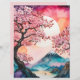 Papier à papier à scandale avec un paysage japonais en saison de fleurs de cerisiers, sakura. Peinture à l'encre d'alcool. L'avant est imprimé avec le design floral, l'arrière est rose clair clair clair. Parfait pour la fabrication de papier pour de nombreuses occasions.
