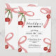Célébrez la plus belle bénédiction de la vie avec notre invitation à la douche "Cerry Coquette Baby"! Ce design adorable éclate de cerises juteuses, de beaux arcs et de feuillage aquarellé, créant une ambiance fraîche et moderne parfaite pour un baby shower à thème printemps, été ou jardin. Idéal pour des célébrations sans distinction de genre, de bébé garçon ou de petite fille.