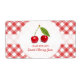 Personnalisez vos pots de confitures maison ! Étiquettes de bocaux rétro personnalisables pour confiture de cerise sucrée maison, gelée ou confitures aux cerises fraîches sur motif de nappes en vichy rouge et blanc. D'autres autocollants de confiture de fruits sont également disponibles.