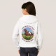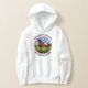 Ce sweat à capuche personnalisable pour fille présente une belle illustration d'un cheval appaloosa brun et blanc galopant dans un pâturage vert luxuriant, accompagné d'un oiseau bleu mignon. Le design est mis en valeur par une bordure tendance à bord festonné et des pois ludiques, créant un look fantaisiste et élégant. Ajoutez un nom et un texte personnalisé pour créer un cadeau spécial pour les jeunes cavaliers et les amoureux des chevaux. Parfait pour les anniversaires, les vacances ou toute autre occasion.